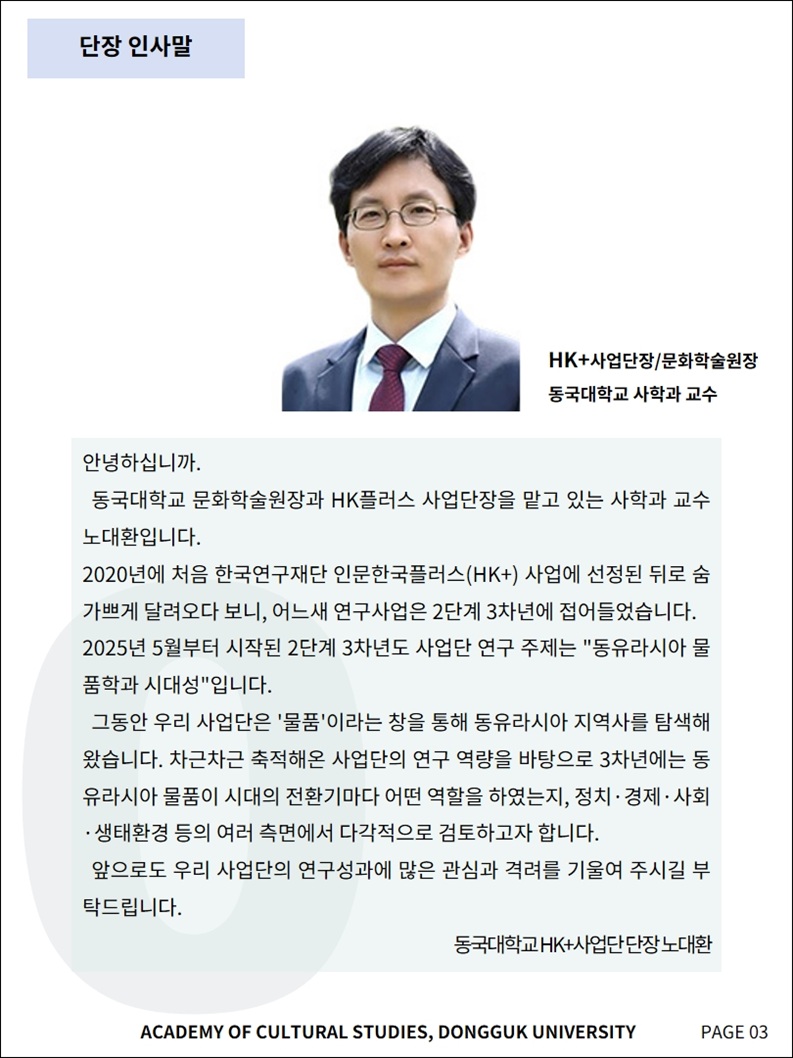 세계 물품학의 최고 거점 연구단으로 거듭날 수 있도록최선을 다하겠습니다.